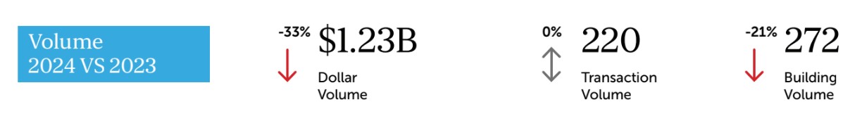 NEW YORK, NY – February 4, 2025 – In 2024, the Bronx investment sales market saw steady activity with 220 trades, but dollar volume fell 33% to $1.23 billion, the lowest level since 2011 and the sharpest decline among all the New York City submarkets, according to Ariel Property Advisors’ Bronx 2024 Year-End Commercial Real Estate Trends report.